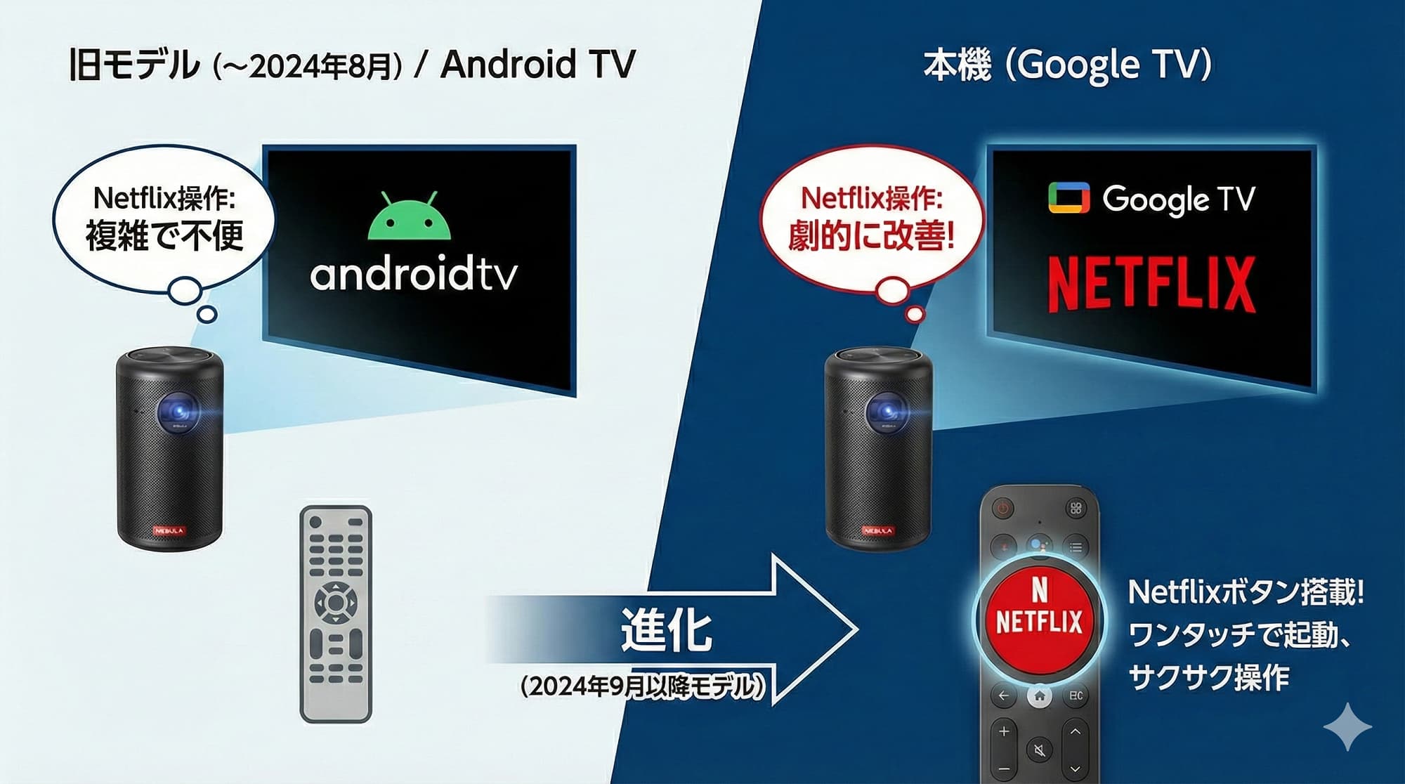 これまでのモバイルプロジェクターで弱点だったのが「操作のしにくさ」や「Netflixを見る手順の複雑さ」でした。